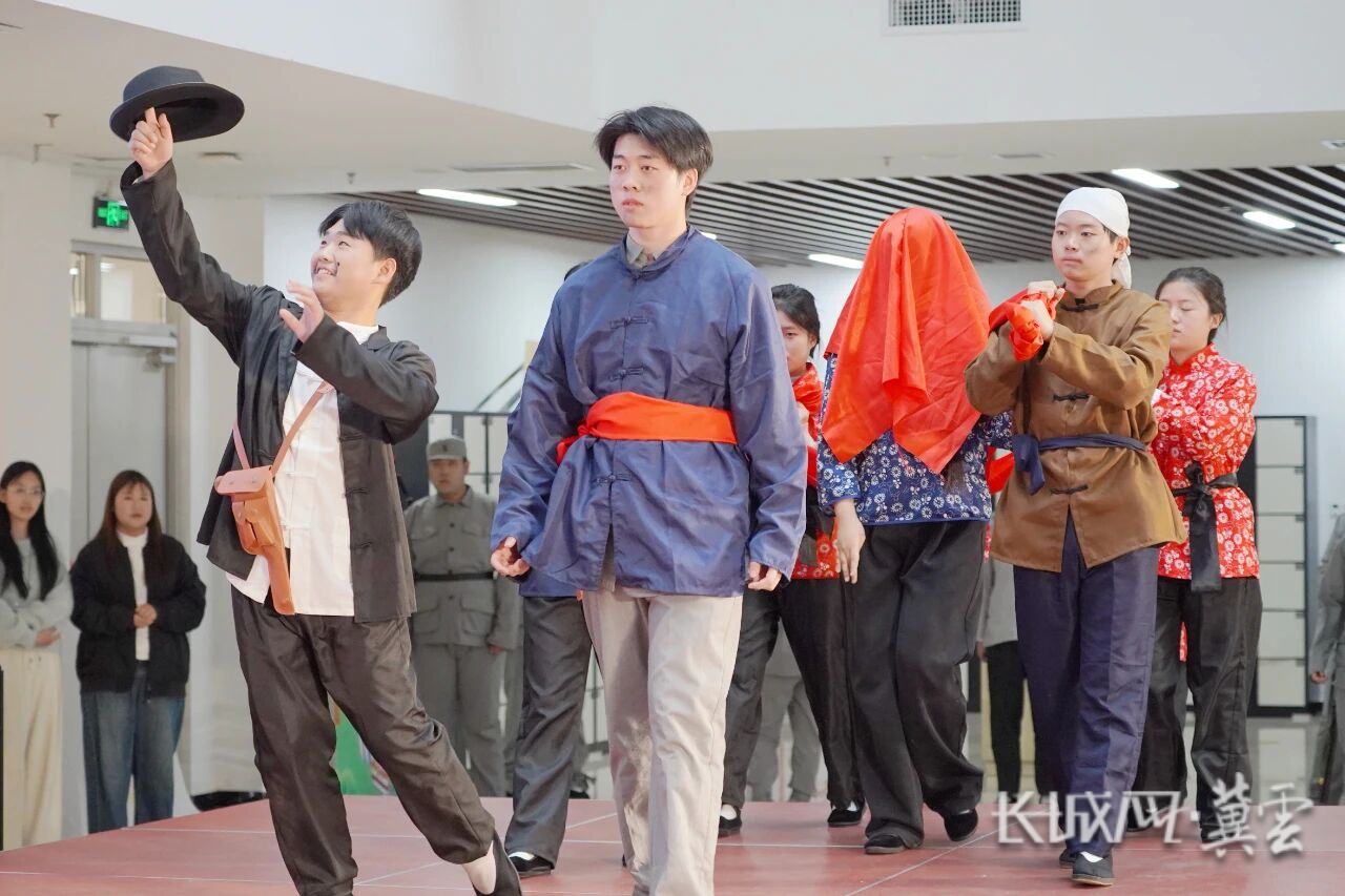 近日,石家庄财经职业学院原创红色话剧《英雄挂云山》在卧龙校区图书馆二楼开演。