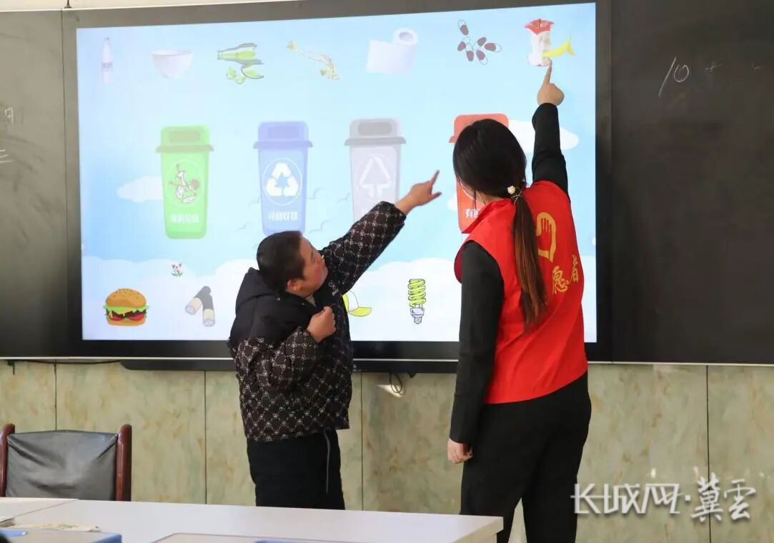志愿者们发挥专业所长,将垃圾分类知识转化为趣味互动游戏。通过自制的四色分类卡通桶、形象直观的垃圾卡片,以情景模拟、儿歌口诀等符合特殊儿童认知特点的方式,手把手引导孩子们学习垃圾分类。孩子们在“投一投”“分一分”的游戏中,既收获了乐趣,也初步树立起环保意识。