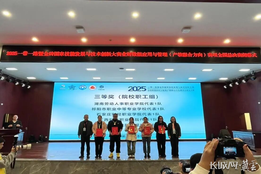 近日,2025 “一带一路” 暨金砖国家技能发展与技术创新大赛之业财数据应用与管理(产教融合方向)赛项全国总决赛在湖南省长沙市落幕。石家庄财经职业学院会计与金融学院石朋玉、王乙茹、白丹、王宇硕四位教师组成的参赛队伍,凭借扎实的专业功底、出色的数据分析能力与高效的团队协作,从全国百余支院校与企业的参赛队伍中脱颖而出,成功斩获全国三等奖,充分展现了石家庄财经职业学院在产教融合背景下业财数据领域的教学成果与人才培养实力。
