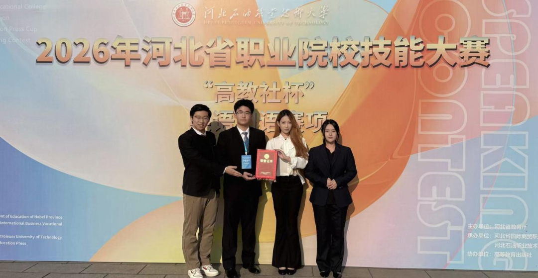 近日,由河北省教育厅主办,河北省国际商贸职业教育集团承办的2026年河北省职业院校技能大赛“高教社杯”英语口语比赛在河北石油职业技术大学落下帷幕。石家庄财经职业学院师生组成的参赛团队在全省46支非专业组参赛队伍中脱颖而出,以第九名的优异成绩荣获省级二等奖,一举刷新学校在该赛项的历史最佳战绩,实现了学校在英语口语省级技能大赛中的新突破。