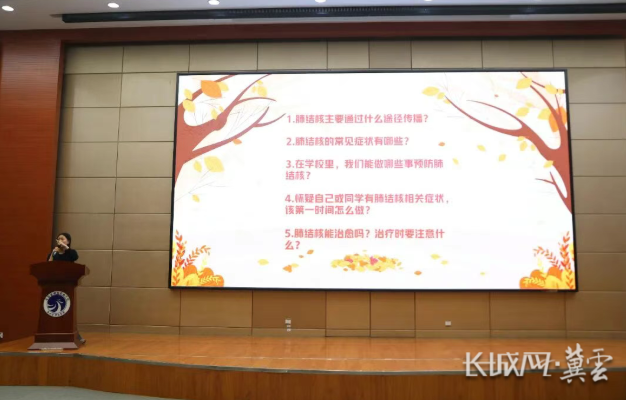 现场播放了精心剪辑的肺结核防治科普视频。内容紧扣校园生活,以生动形式讲解传播途径、高发场景与核心预防措施,重点强调“咳嗽超2周须就医”“谨防飞沫传播”等实用知识点,帮助同学们快速掌握自我保护技能。