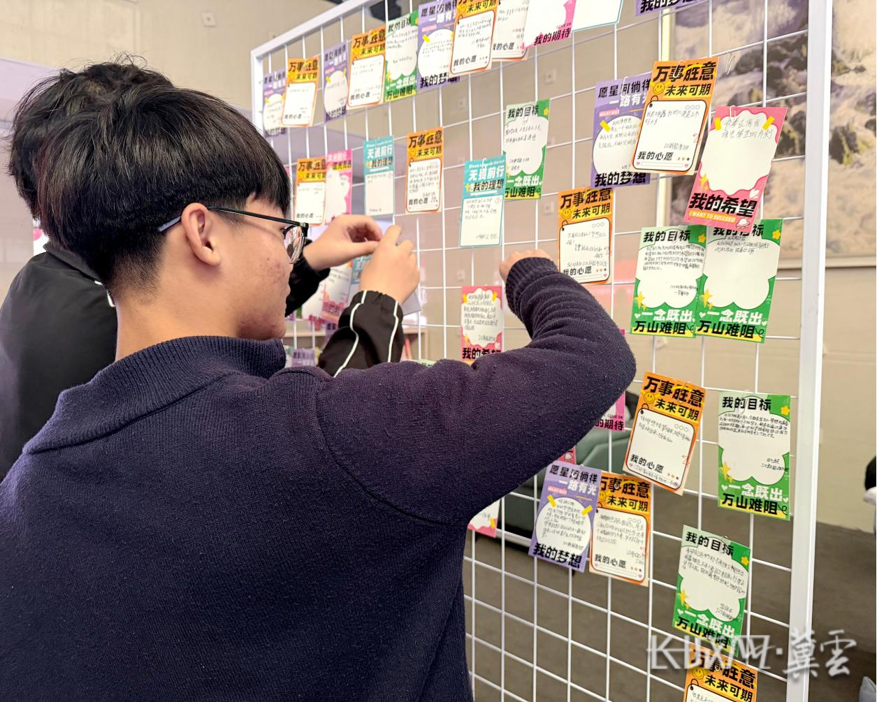 近日,石家庄财经职业学院文理学院举办了一场以“心愿墙上筑梦,青春路上同行”为主题的活动。同学们执笔书写寄给三年后的自己,将青春的梦想轻轻贴于心愿墙上,让愿望在时光中悄然生根。同学们纷纷领取心愿卡,静心思考,提笔书写对未来的期盼与规划。