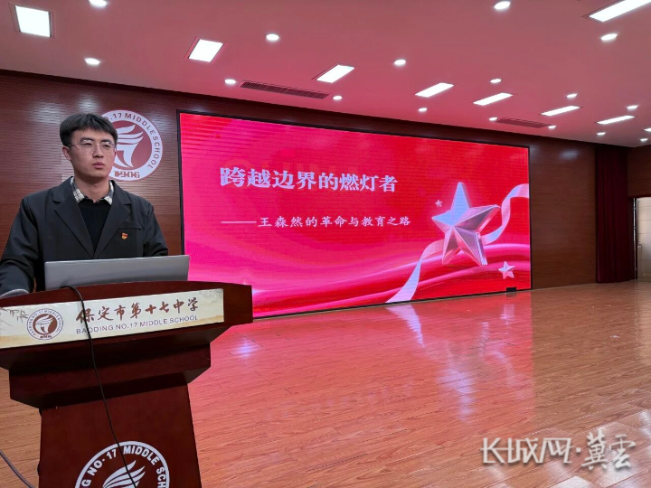 近日,保定市第十七中学“校史固初心——体验式微党课大讲堂”第一期开讲。全校师生共同追溯革命先驱王森然同志跨越世纪的革命与教育生涯,从其光辉足迹中汲取精神滋养与奋进力量。