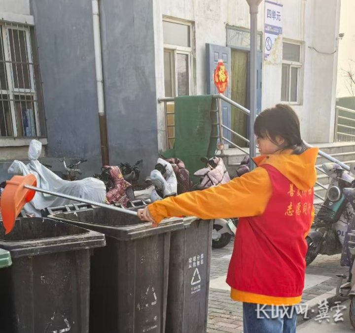 高一(7)班学生走进小区开展清扫志愿服务活动。石家庄市第六中学 供图