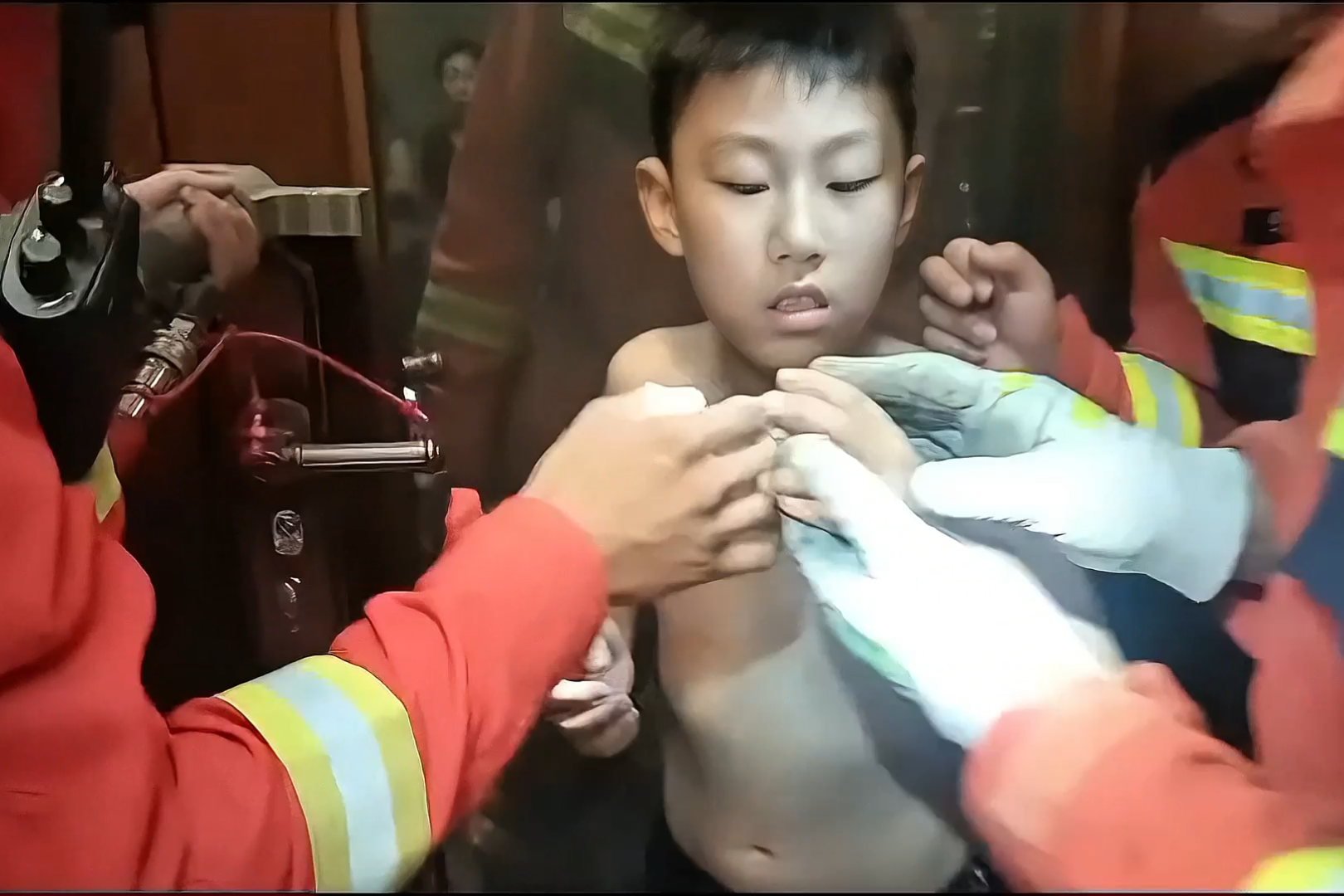 河北邢台:男孩手指卡门缝之中 消防成功救援